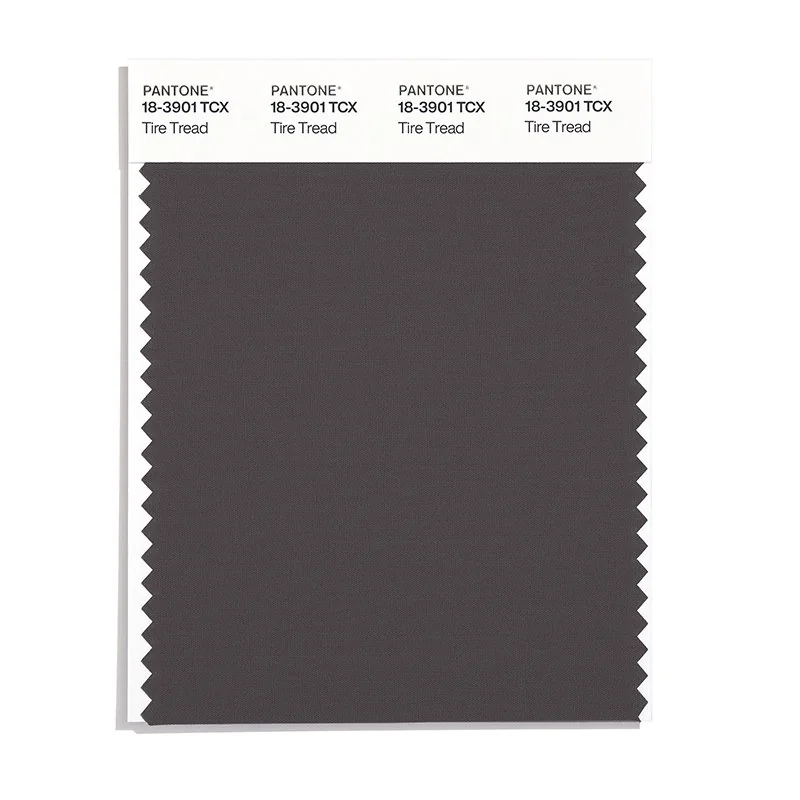 Tire Tread is a deep and rich black from the Pantone TCX collection, identified by the code 18-3901 TCX. This warm tone with its balanced character makes it an excellent choice for luxury branding, formal wear, and sophisticated design.