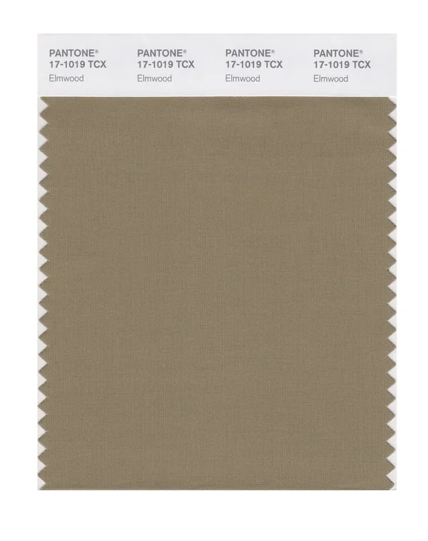 Elmwood is a medium-toned color from the Pantone TCX collection, identified by the code 17-1019 TCX. This warm tone with its balanced character makes it an excellent choice for warm luxury, artisanal products, and natural branding.