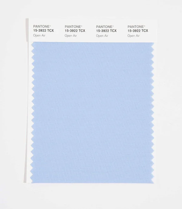 Open Air is a light and airy blue from the Pantone TCX collection, identified by the code 15-3922 TCX. This cool tone with its balanced character makes it an excellent choice for corporate branding, healthcare, and professional design.