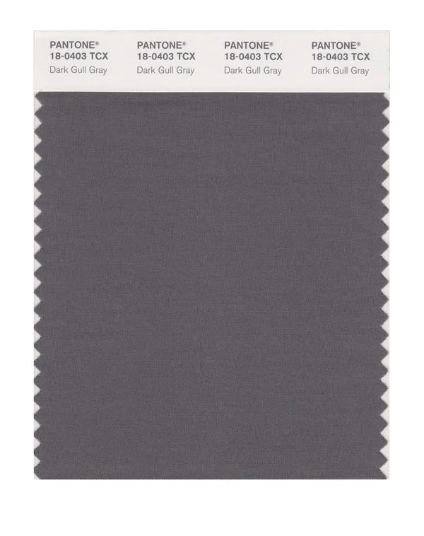 Dark Gull Gray is a medium-toned color from the Pantone TCX collection, identified by the code 18-0403 TCX. This warm tone with its balanced character makes it an excellent choice for sophisticated neutrals, urban design, and modern aesthetics.
