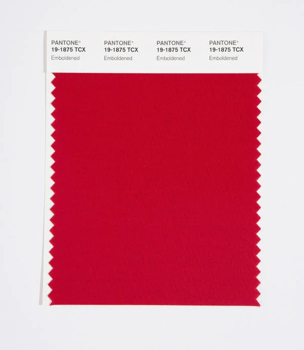 Emboldened is a medium-toned red from the Pantone TCX collection, identified by the code 19-1875 TCX. This warm tone with its balanced character makes it an excellent choice for bold branding, passionate designs, and statement pieces.