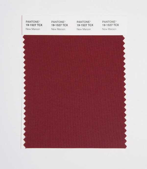 New Maroon is a medium-toned red from the Pantone TCX collection, identified by the code 19-1527 TCX. This warm tone with its balanced character makes it an excellent choice for bold branding, passionate designs, and statement pieces.