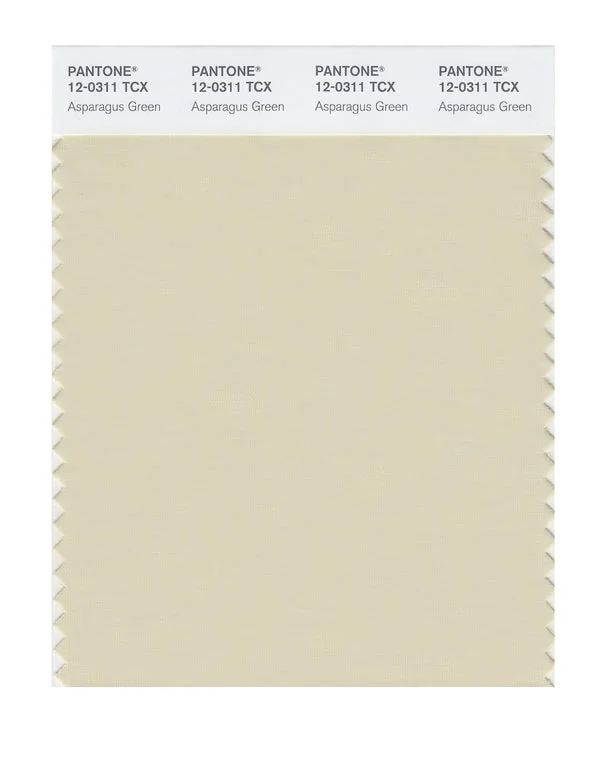 Asparagus Green is a light and airy yellow from the Pantone TCX collection, identified by the code 12-0311 TCX. This warm tone with its balanced character makes it an excellent choice for optimistic branding, children's products, and energizing spaces.