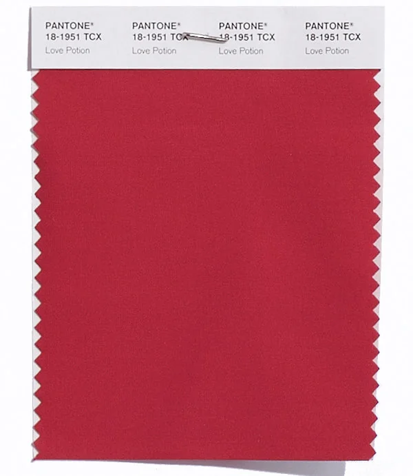 Love Potion is a medium-toned red from the Pantone TCX collection, identified by the code 18-1951 TCX. This warm tone with its vibrant and bold character makes it an excellent choice for bold branding, passionate designs, and statement pieces.