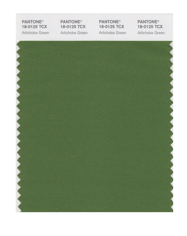 Artichoke Green is a medium-toned color from the Pantone TCX collection, identified by the code 18-0125 TCX. This cool tone with its balanced character makes it an excellent choice for luxury jewelry, premium branding, and sophisticated design.