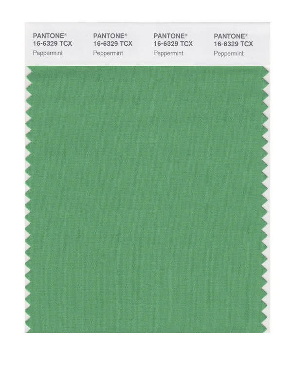 Peppermint is a medium-toned color from the Pantone TCX collection, identified by the code 16-6329 TCX. This cool tone with its balanced character makes it an excellent choice for wellness branding, spa environments, and serene design.