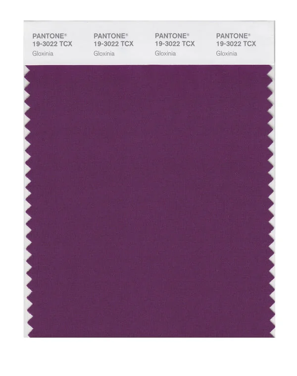 Gloxinia is a deep and rich color from the Pantone TCX collection, identified by the code 19-3022 TCX. This warm tone with its balanced character makes it an excellent choice for bold fashion, energetic branding, and statement design.