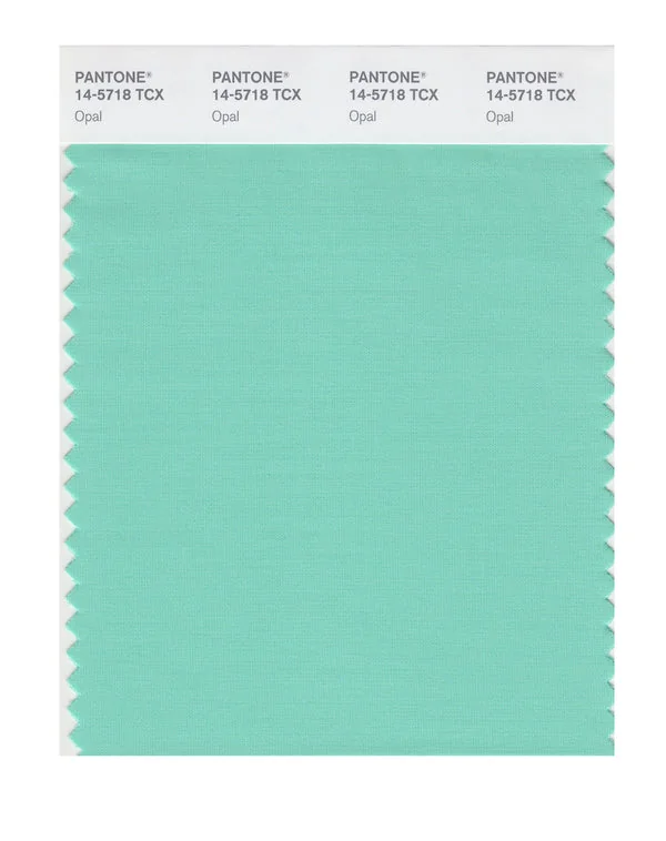 Opal is a medium-toned color from the Pantone TCX collection, identified by the code 14-5718 TCX. This cool tone with its balanced character makes it an excellent choice for tropical themes, jewelry design, and exotic branding.