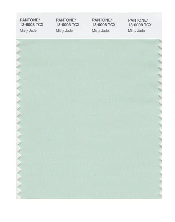 Misty Jade is a light and airy green from the Pantone TCX collection, identified by the code 13-6008 TCX. This cool tone with its balanced character makes it an excellent choice for sustainability, nature brands, and eco-friendly design.