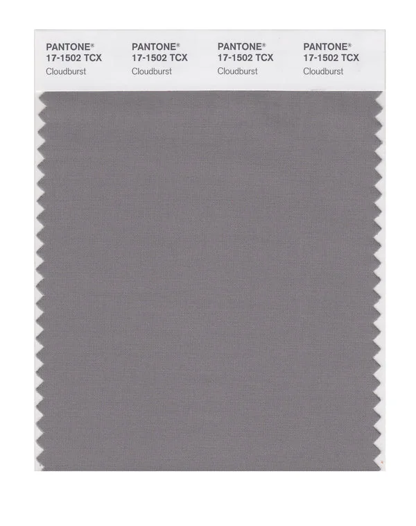 Cloudburst is a medium-toned color from the Pantone TCX collection, identified by the code 17-1502 TCX. This warm tone with its balanced character makes it an excellent choice for sophisticated neutrals, urban design, and modern aesthetics.