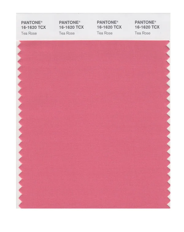 Tea Rose is a medium-toned pink from the Pantone TCX collection, identified by the code 16-1620 TCX. This warm tone with its balanced character makes it an excellent choice for feminine products, romantic themes, and wellness branding.