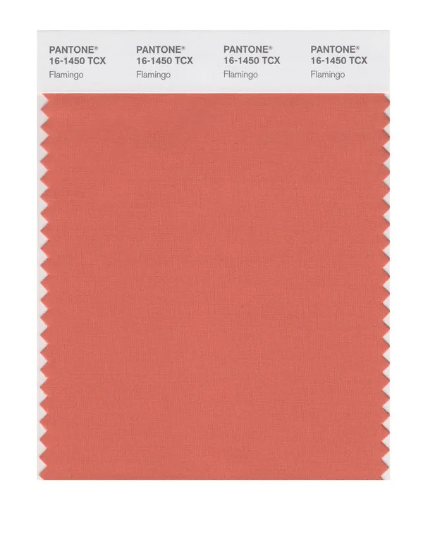 Flamingo is a medium-toned color from the Pantone TCX collection, identified by the code 16-1450 TCX. This warm tone with its balanced character makes it an excellent choice for tropical themes, summer collections, and vibrant branding.