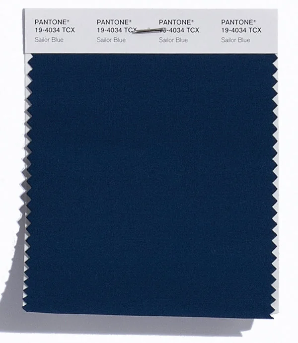 Sailor Blue is a deep and rich color from the Pantone TCX collection, identified by the code 19-4034 TCX. This cool tone with its vibrant and bold character makes it an excellent choice for professional services, maritime themes, and classic design.