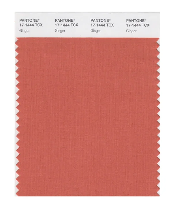 Ginger is a medium-toned color from the Pantone TCX collection, identified by the code 17-1444 TCX. This warm tone with its balanced character makes it an excellent choice for luxury fashion, dramatic interiors, and premium branding.