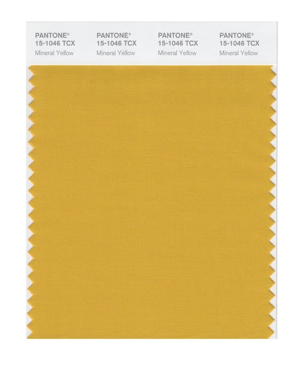 Mineral Yellow is a medium-toned color from the Pantone TCX collection, identified by the code 15-1046 TCX. This warm tone with its balanced character makes it an excellent choice for warm luxury, artisanal products, and natural branding.