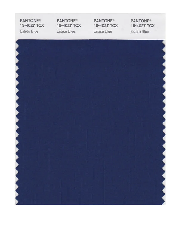 Estate Blue is a deep and rich color from the Pantone TCX collection, identified by the code 19-4027 TCX. This cool tone with its balanced character makes it an excellent choice for professional services, maritime themes, and classic design.