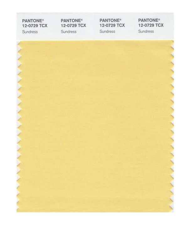 Sundress is a light and airy color from the Pantone TCX collection, identified by the code 12-0729 TCX. This warm tone with its vibrant and bold character makes it an excellent choice for luxury branding, premium products, and elegant accents.