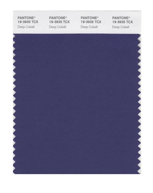 Deep Cobalt is a medium-toned color from the Pantone TCX collection, identified by the code 19-3935 TCX. This cool tone with its balanced character makes it an excellent choice for premium branding, luxury services, and sophisticated design.