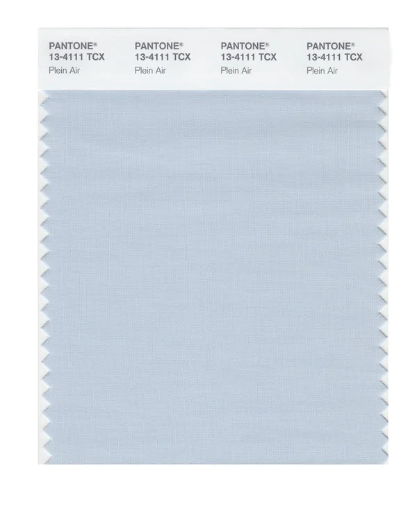 Plein Air is a light and airy blue from the Pantone TCX collection, identified by the code 13-4111 TCX. This cool tone with its balanced character makes it an excellent choice for corporate branding, healthcare, and professional design.