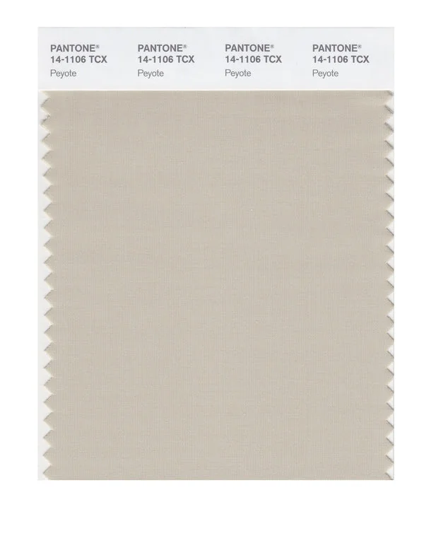 Peyote is a light and airy color from the Pantone TCX collection, identified by the code 14-1106 TCX. This warm tone with its balanced character makes it an excellent choice for soft femininity, wellness branding, and gentle aesthetics.