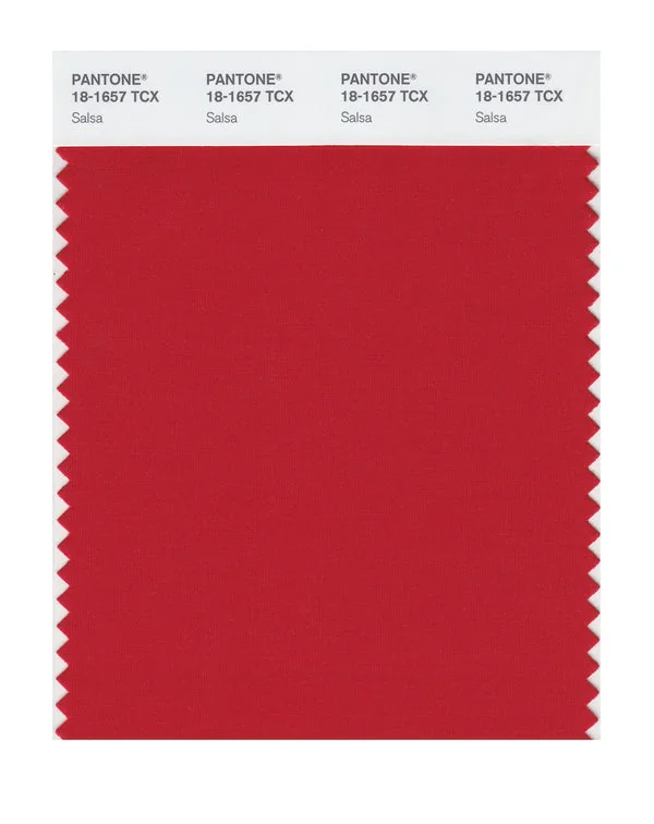 Salsa is a medium-toned red from the Pantone TCX collection, identified by the code 18-1657 TCX. This warm tone with its vibrant and bold character makes it an excellent choice for bold branding, passionate designs, and statement pieces.