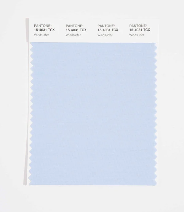 Windsurfer is a light and airy blue from the Pantone TCX collection, identified by the code 15-4031 TCX. This cool tone with its balanced character makes it an excellent choice for corporate branding, healthcare, and professional design.