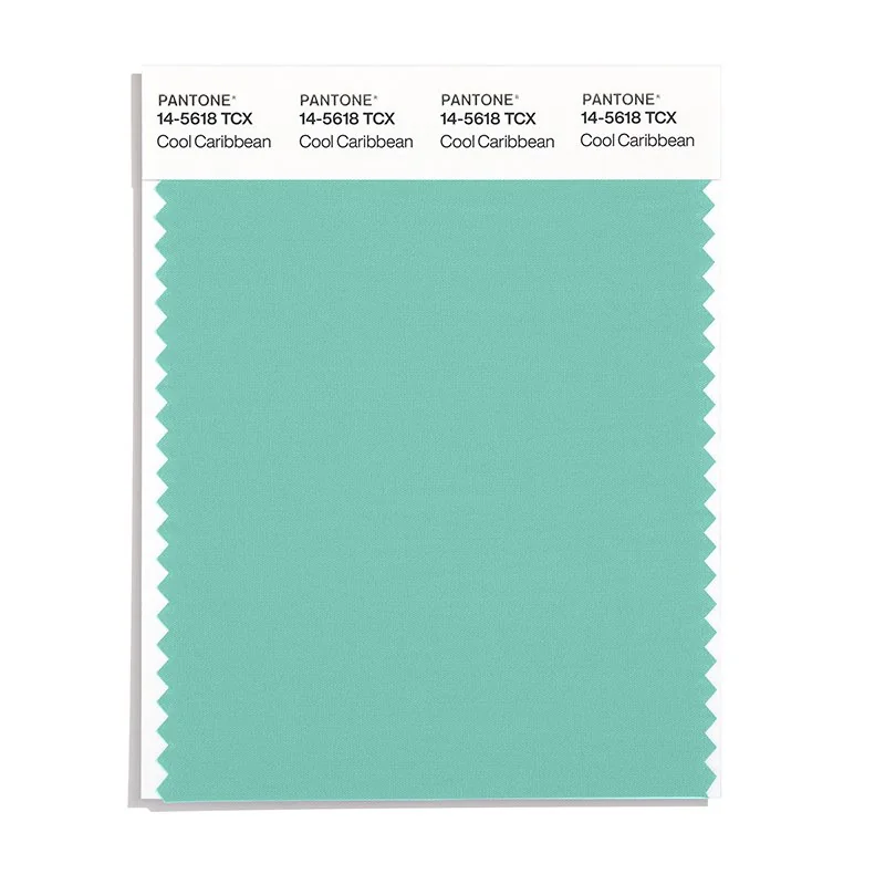 Cool Caribbean is a medium-toned color from the Pantone TCX collection, identified by the code 14-5618 TCX. This cool tone with its balanced character makes it an excellent choice for tropical themes, jewelry design, and exotic branding.