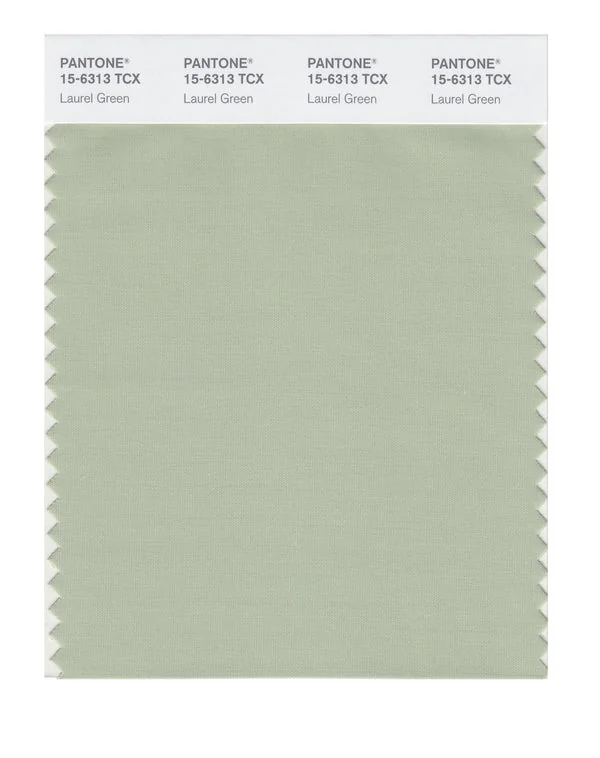 Laurel Green is a medium-toned green from the Pantone TCX collection, identified by the code 15-6313 TCX. This cool tone with its balanced character makes it an excellent choice for sustainability, nature brands, and eco-friendly design.