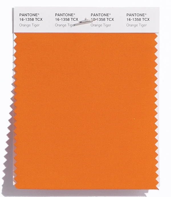 Orange Tiger is a medium-toned orange from the Pantone TCX collection, identified by the code 16-1358 TCX. This warm tone with its vibrant and bold character makes it an excellent choice for energetic branding, autumn collections, and creative spaces.