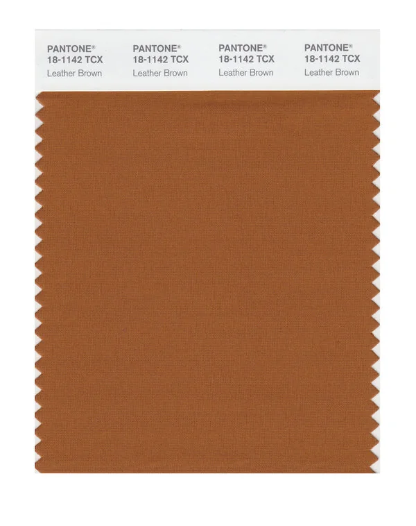 Leather Brown is a medium-toned brown from the Pantone TCX collection, identified by the code 18-1142 TCX. This warm tone with its balanced character makes it an excellent choice for natural products, rustic design, and earthy branding.