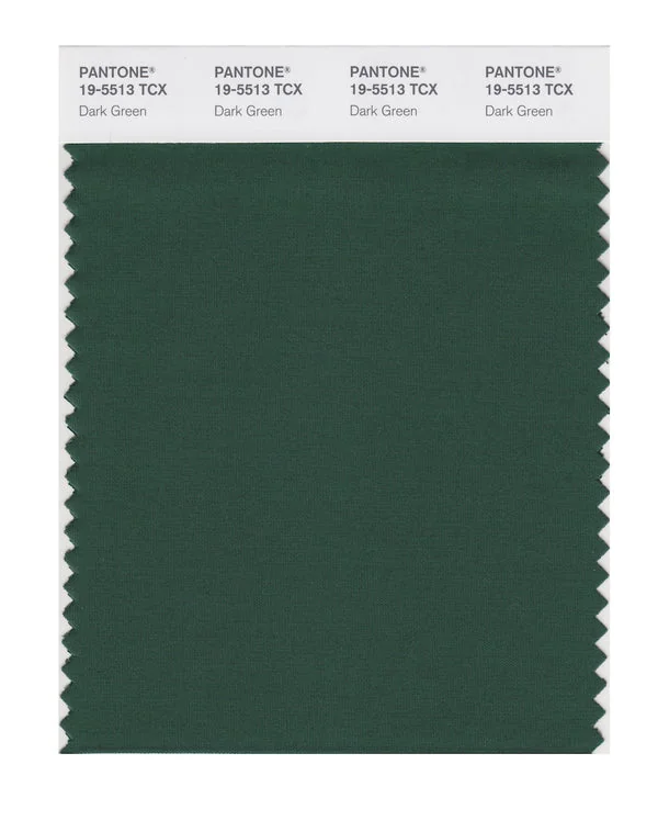 Dark Green is a deep and rich color from the Pantone TCX collection, identified by the code 19-5513 TCX. This cool tone with its balanced character makes it an excellent choice for wellness branding, spa environments, and serene design.