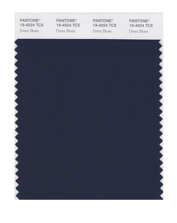 Dress Blues is a deep and rich color from the Pantone TCX collection, identified by the code 19-4024 TCX. This cool tone with its balanced character makes it an excellent choice for professional services, maritime themes, and classic design.