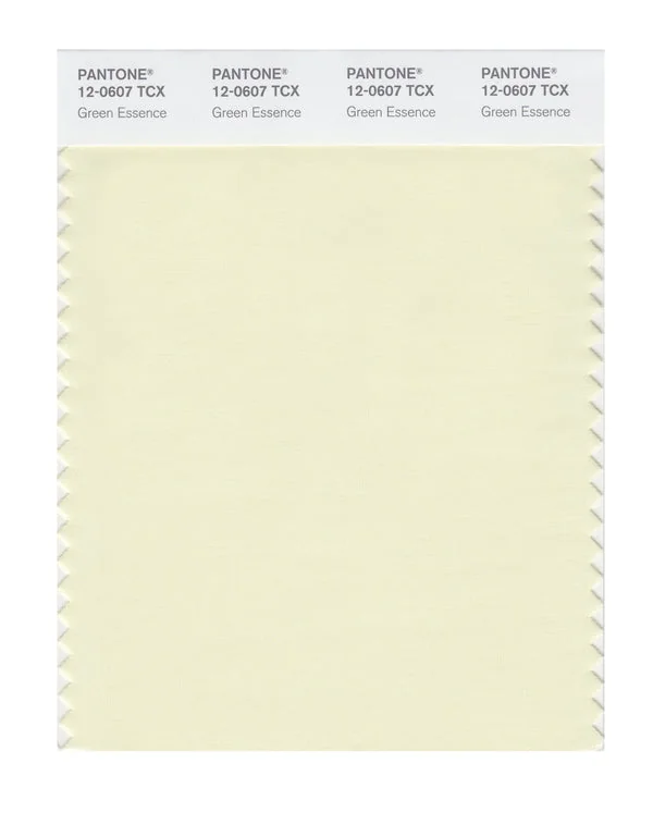 Green Essence is a light and airy color from the Pantone TCX collection, identified by the code 12-0607 TCX. This cool tone with its soft and pastel character makes it an excellent choice for gentle optimism, baby products, and soft branding.