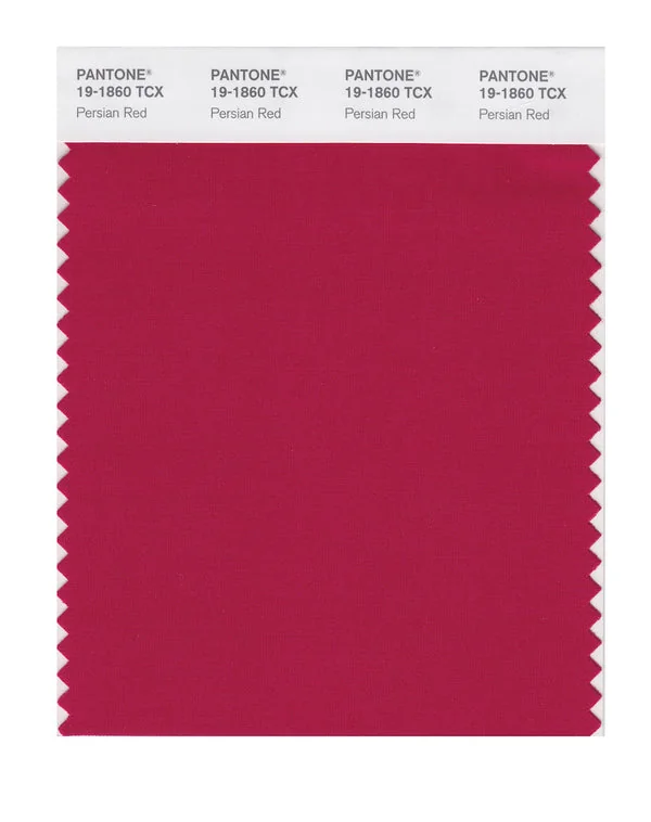 Persian Red is a medium-toned red from the Pantone TCX collection, identified by the code 19-1860 TCX. This warm tone with its vibrant and bold character makes it an excellent choice for bold branding, passionate designs, and statement pieces.