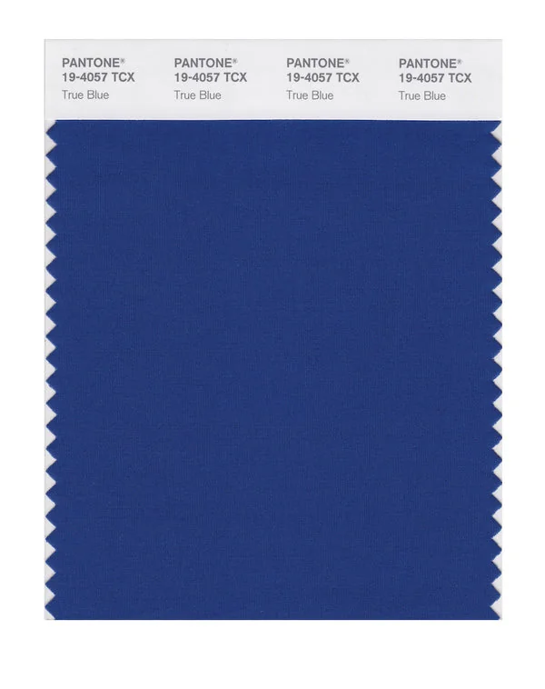 True Blue is a deep and rich color from the Pantone TCX collection, identified by the code 19-4057 TCX. This cool tone with its balanced character makes it an excellent choice for premium branding, luxury services, and sophisticated design.