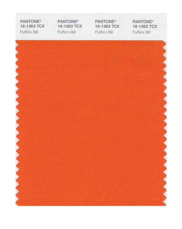 Puffins Bill is a medium-toned orange from the Pantone TCX collection, identified by the code 16-1363 TCX. This warm tone with its vibrant and bold character makes it an excellent choice for energetic branding, autumn collections, and creative spaces.