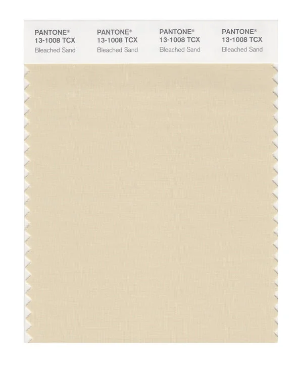 Bleached Sand is a light and airy color from the Pantone TCX collection, identified by the code 13-1008 TCX. This warm tone with its balanced character makes it an excellent choice for luxury branding, premium products, and elegant accents.