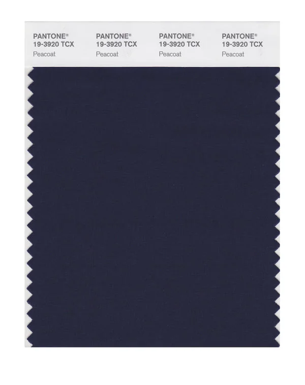 Peacoat is a deep and rich color from the Pantone TCX collection, identified by the code 19-3920 TCX. This cool tone with its balanced character makes it an excellent choice for professional services, maritime themes, and classic design.