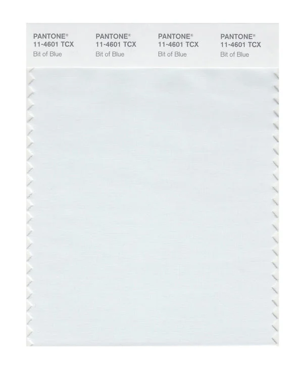 Bit Of Blue is a light and airy color from the Pantone TCX collection, identified by the code 11-4601 TCX. This cool tone with its soft and pastel character makes it an excellent choice for elegant neutrals, luxury textiles, and sophisticated design.