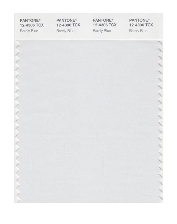 Barely Blue is a light and airy color from the Pantone TCX collection, identified by the code 12-4306 TCX. This cool tone with its soft and pastel character makes it an excellent choice for modern minimalism, tech products, and clean design.