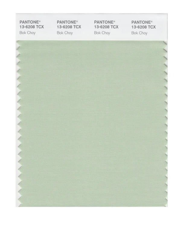 Bok Choy is a light and airy green from the Pantone TCX collection, identified by the code 13-6208 TCX. This cool tone with its balanced character makes it an excellent choice for sustainability, nature brands, and eco-friendly design.