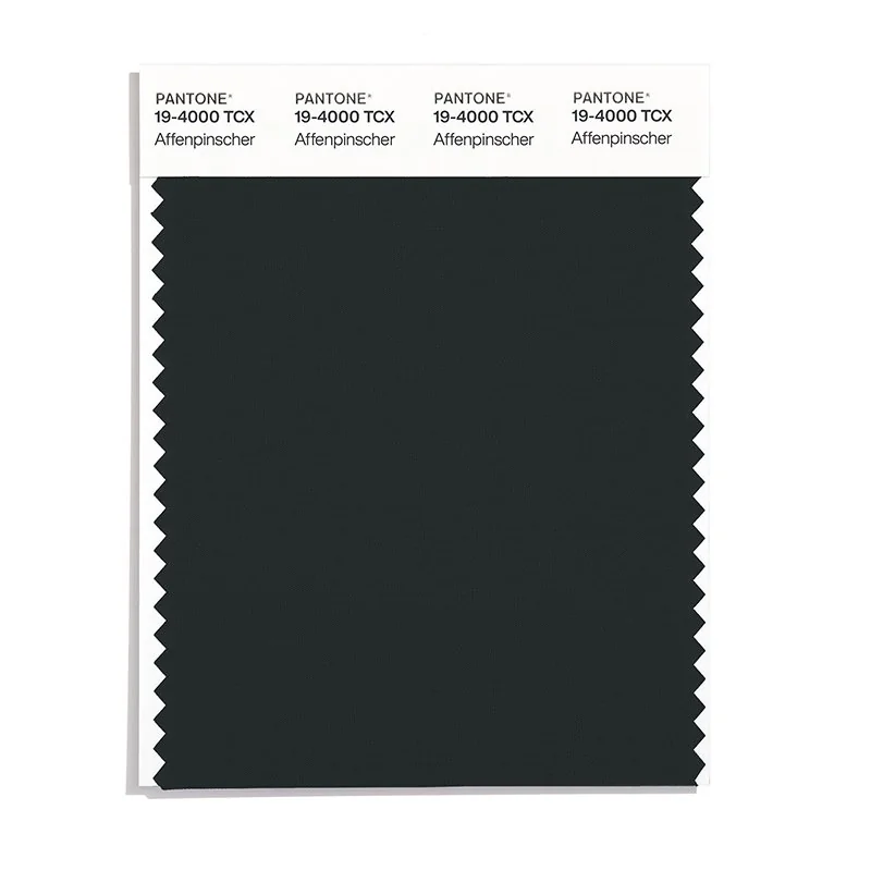 Affenpinscher is a deep and rich color from the Pantone TCX collection, identified by the code 19-4000 TCX. This cool tone with its balanced character makes it an excellent choice for professional services, maritime themes, and classic design.