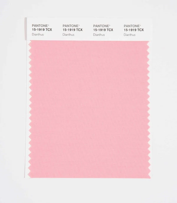 Dianthus is a light and airy pink from the Pantone TCX collection, identified by the code 15-1919 TCX. This warm tone with its vibrant and bold character makes it an excellent choice for feminine products, romantic themes, and wellness branding.