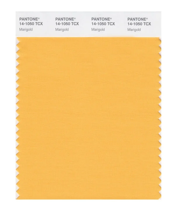 Marigold is a medium-toned color from the Pantone TCX collection, identified by the code 14-1050 TCX. This warm tone with its vibrant and bold character makes it an excellent choice for luxury branding, premium products, and elegant accents.