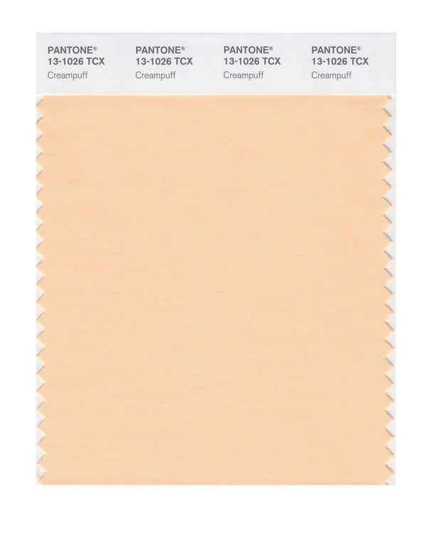 Creampuff is a light and airy color from the Pantone TCX collection, identified by the code 13-1026 TCX. This warm tone with its vibrant and bold character makes it an excellent choice for soft femininity, wellness branding, and gentle aesthetics.