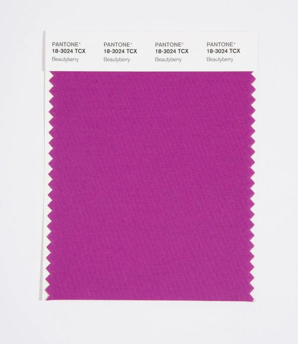 Beautyberry is a medium-toned color from the Pantone TCX collection, identified by the code 18-3024 TCX. This warm tone with its balanced character makes it an excellent choice for bold fashion, energetic branding, and statement design.