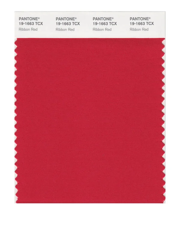 Ribbon Red is a medium-toned red from the Pantone TCX collection, identified by the code 19-1663 TCX. This warm tone with its balanced character makes it an excellent choice for bold branding, passionate designs, and statement pieces.