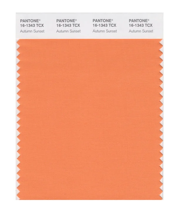 Autumn Sunset is a medium-toned color from the Pantone TCX collection, identified by the code 16-1343 TCX. This warm tone with its vibrant and bold character makes it an excellent choice for soft femininity, wellness branding, and gentle aesthetics.
