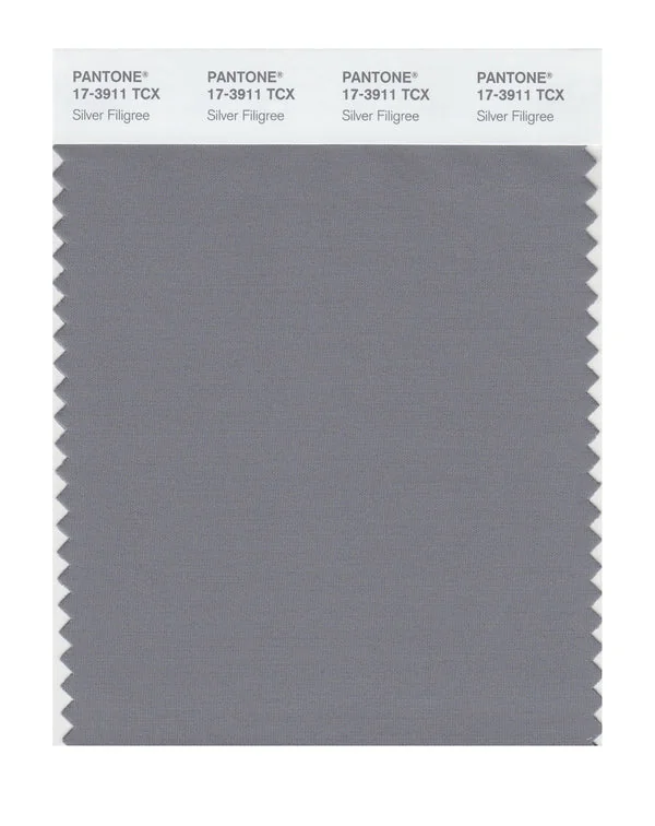 Silver Filigree is a medium-toned color from the Pantone TCX collection, identified by the code 17-3911 TCX. This cool tone with its balanced character makes it an excellent choice for sophisticated neutrals, urban design, and modern aesthetics.