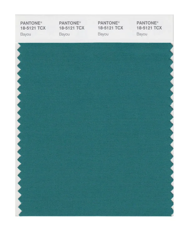 Bayou is a deep and rich color from the Pantone TCX collection, identified by the code 18-5121 TCX. This cool tone with its balanced character makes it an excellent choice for wellness branding, spa environments, and serene design.